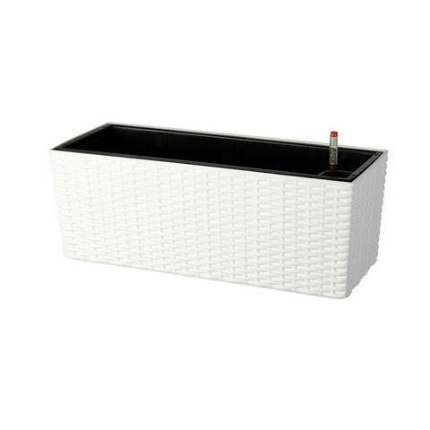 Rattan kendinden sulama açık bahçe plastik dikdörtgen saksı maceta dikdörtgen pencere ekici bitkiler için kutu
